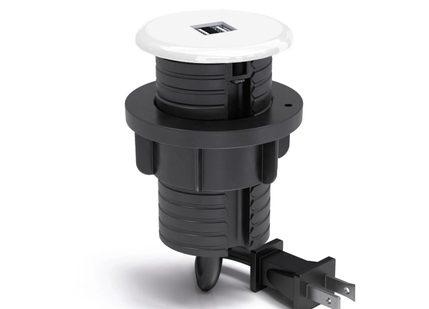 Power your devices with this convenient, grommet power unit featuring two USB ports, one power outlet, and a 72” cord.