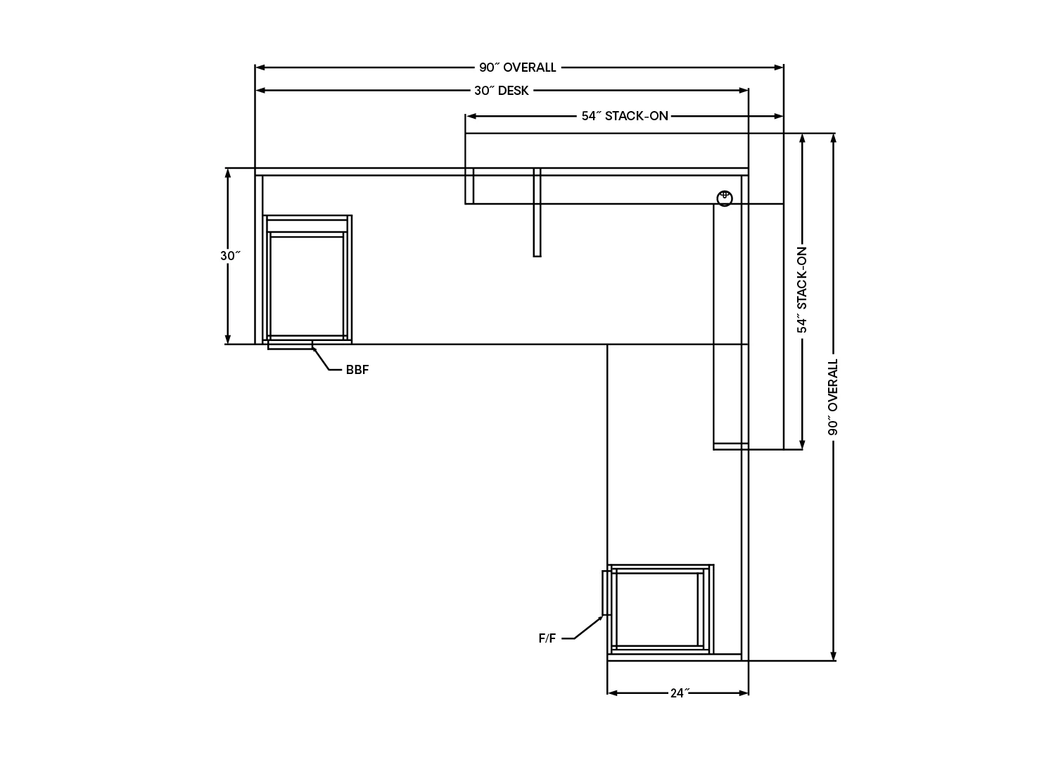 Dimensions:(1x) BBF + (1x) FF Pedestals: